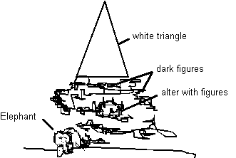 Now, I see this elephant walking out over this embankment carrying something with some figures walking behind it. I keep thinking or sensing in the spirit that this is an evil ritual or something very blasphemous to the Lord. For some reason I believe the triangle is the Lord.