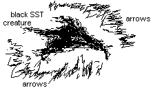 I keep seeing these arrows. There are hundreds and hundreds of arrows filling the sky. I believe Angels are shooting arrows at it. Why are they using arrows? I don't know, but that's what is flying through the air. Maybe that's what it means in the Bible when it says, "The sky would be darkened." For I cannot see much sky, only this black thing.